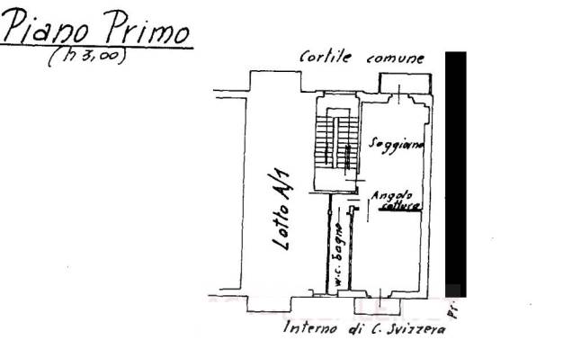 provvista di balcone m 3x1, si affaccia sulla via interna fronte sud. al piano interrato si trova